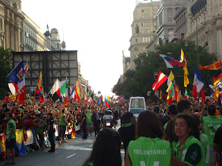 Fui para a Espanha com um grupo de 180 jovens do Brasil inteiro que fazem parte Ministério Jovem (MJ) ou do Ministério Universidades Renovadas (MUR) da RCC,do qual eu participo aqui em São Carlos.Na semana que antecedeu a JMJ permanecemos na região de Navarra em missão. Foi uma experiência simplesmente fantástica.